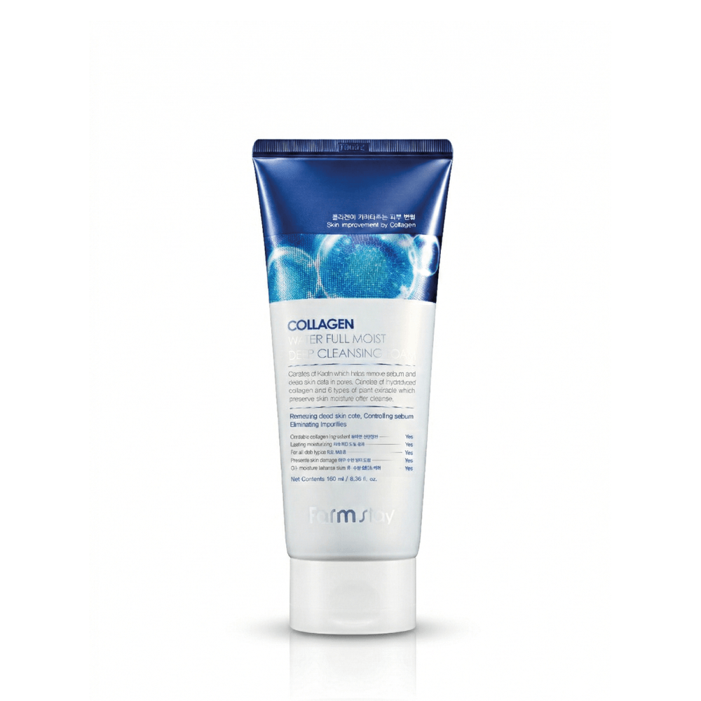 El Limpiador en Espuma Farmstay Collagen Water Full Moist 180 ml es una espuma facial con colágeno hidrolizado que ayuda a remover impurezas y residuos, contribuyendo a una limpieza profunda con sensación de hidratación posterior al lavado.
