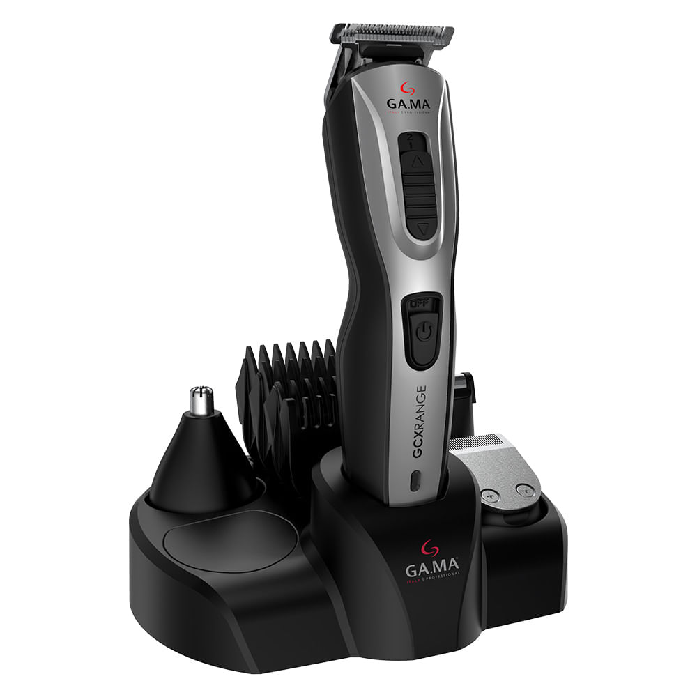 La cortadora GAMA GCX RANGE cumple con funciones Cord-Cordless, su batería es recargable y sus cuchillas son de Alloy. Cuenta con un trimmer de nariz y oreja, barba y peines de alzada. Ademas, incluye aceite y cepillo de limpieza. Todo se puede acomodar en su base organizadora.